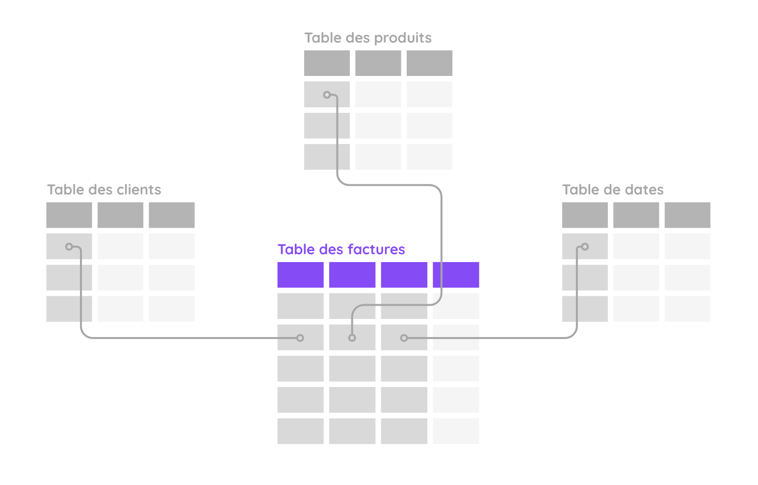 Dans un modèle relationnel, les tables de faits et de dimensions sont connectées entre elles via des relations. Cette architecture de modèle, souvent en "étoile", permet de mieux garantir la qualité des données lors de l'analyse, évitant ainsi les redondances et les erreurs.