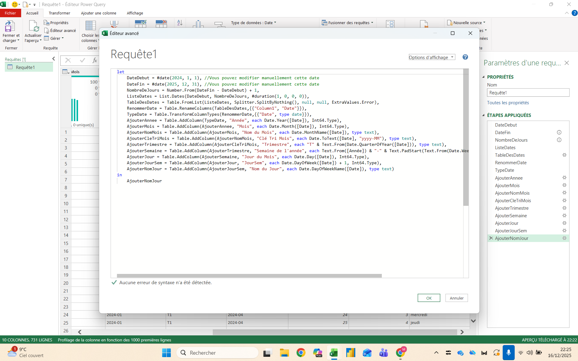 Création en M dans Power Query