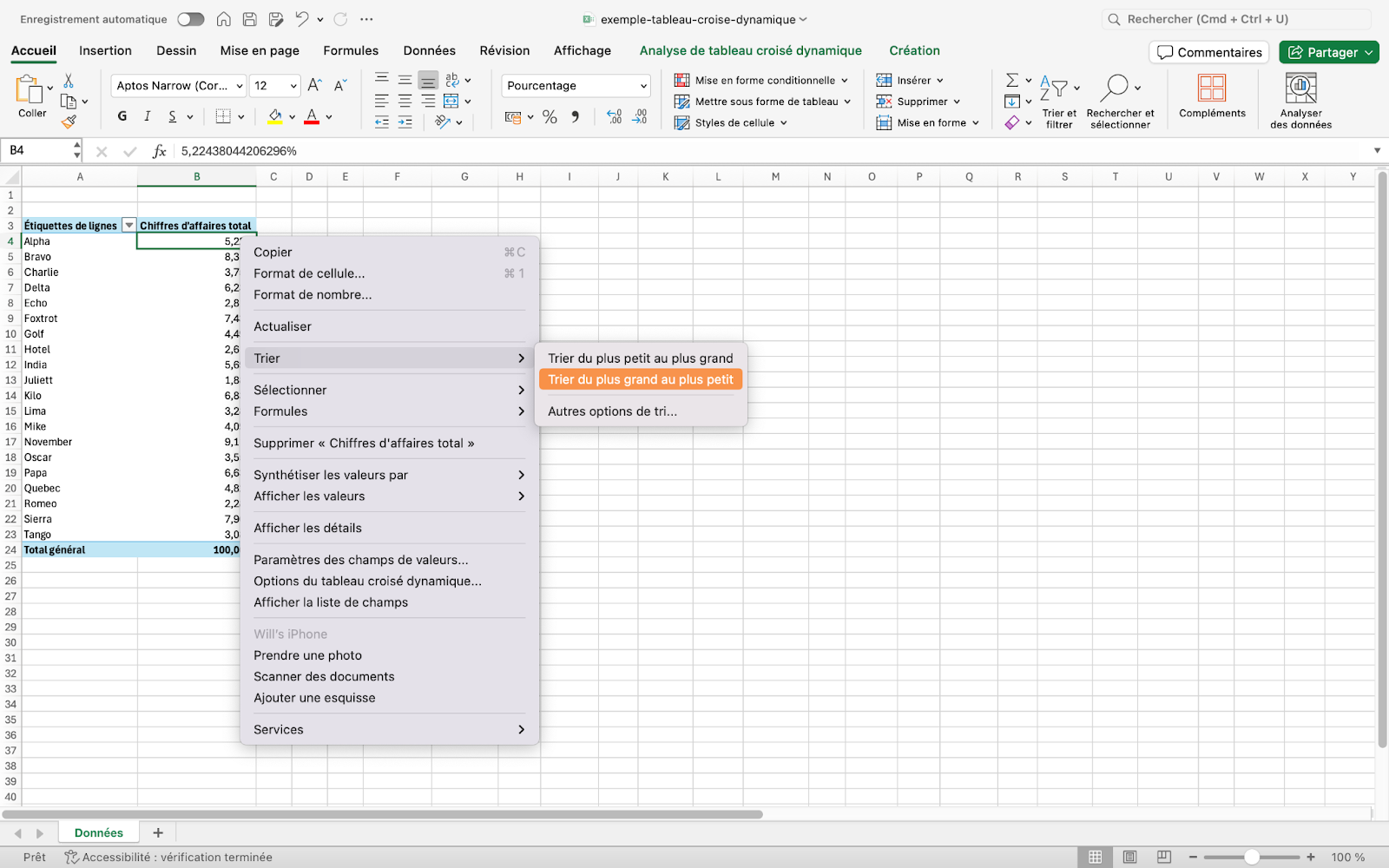 Astuce 4 : Trier un tableau croisé dynamique par valeur (et pas par ordre alphabétique)