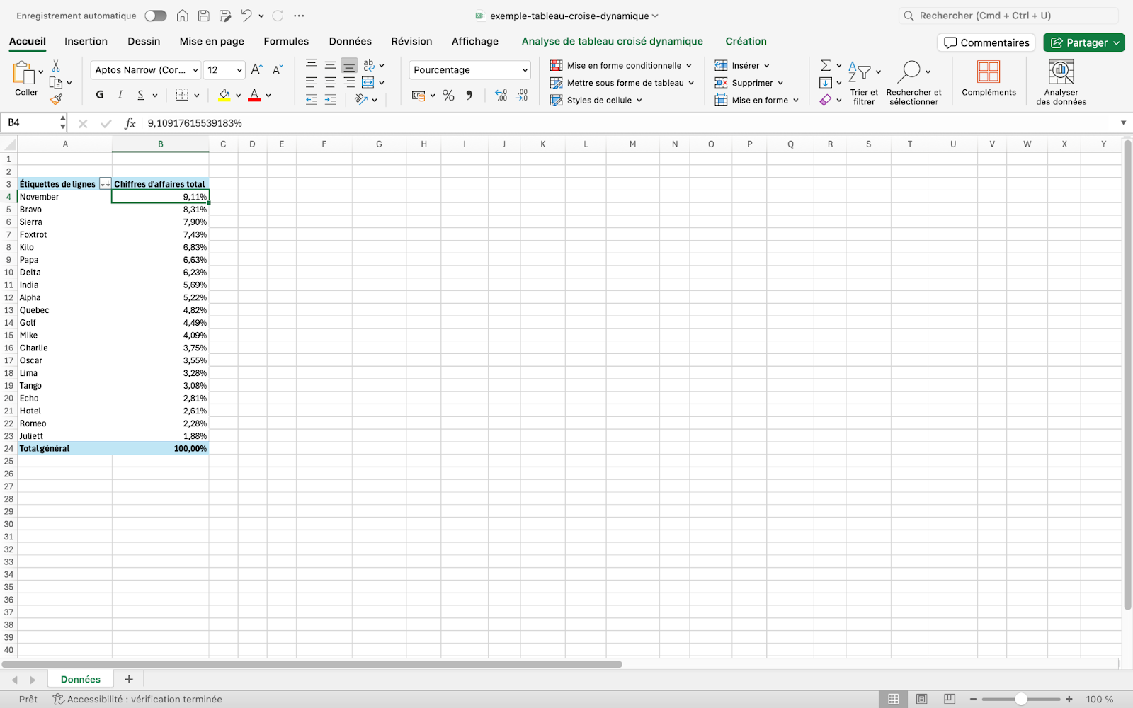 - Sélectionnez % du total général.